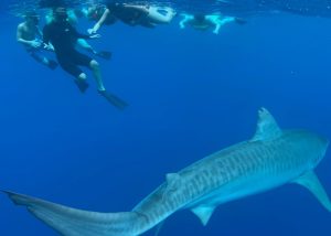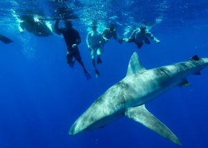 On this unforgettable cage-free shark snorkeling tour, you’ll swim side by side with wild sharks in the open ocean – no diving or cage required. Guided by expert safety divers, you’ll enjoy a safe and respectful encounter with Galapagos sharks, yellowfin tuna, and, on rare occasions, even tiger sharks. The tour includes free high-quality photos and videos, so you can focus on the moment while they capture it for you. All snorkeling gear is provided, and with small group sizes, you’ll get personalized attention and a more intimate experience.